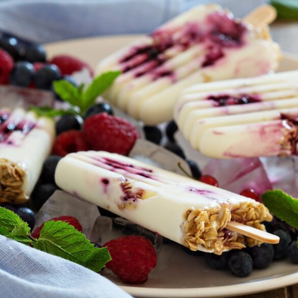 - Stir until well incorporated. Place a heaping spoonful of the yogurt mixture in the bottom of each mold.