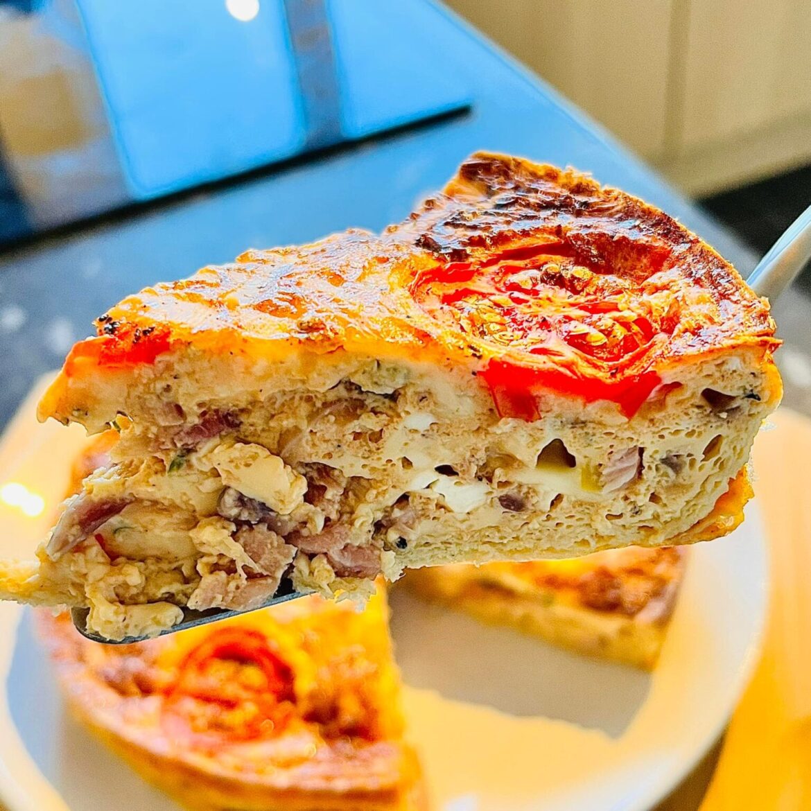 Fully Loaded, Slimming friendly Bacon, Cheese & Tomato Quiche with a Lo-Dough base.