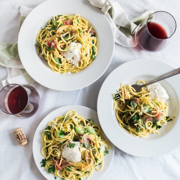 - 1/4 pound thinly sliced country ham or prosciutto, coarsely chopped