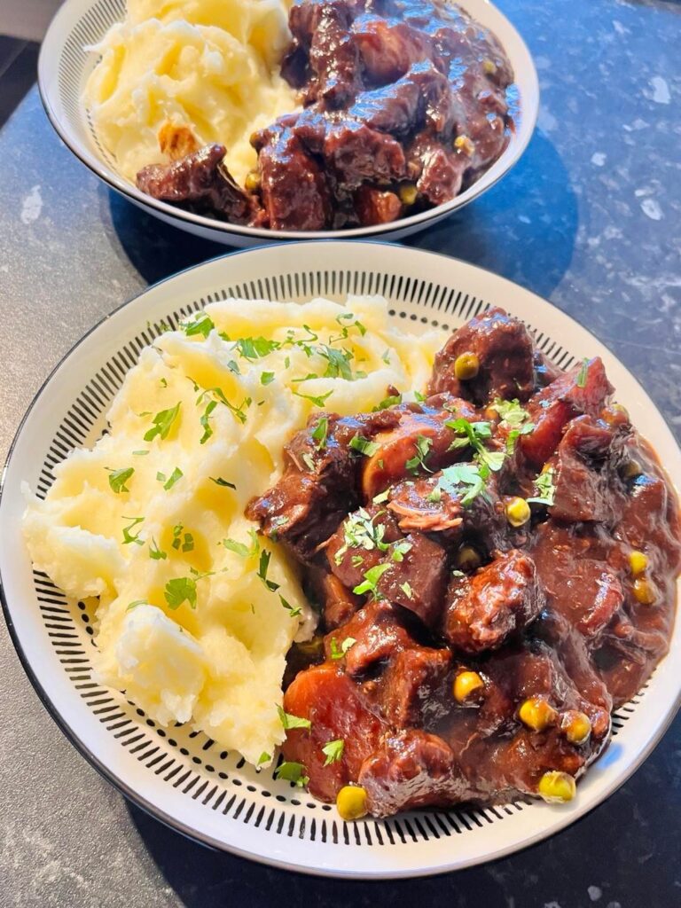 Your slow-cooker Highland Beef Stew should be melt-away and be really rich in both colour and flavour. Serve with some mashed potatoes or if you are not watching the pounds, some freshly baked and butter crusty bread.